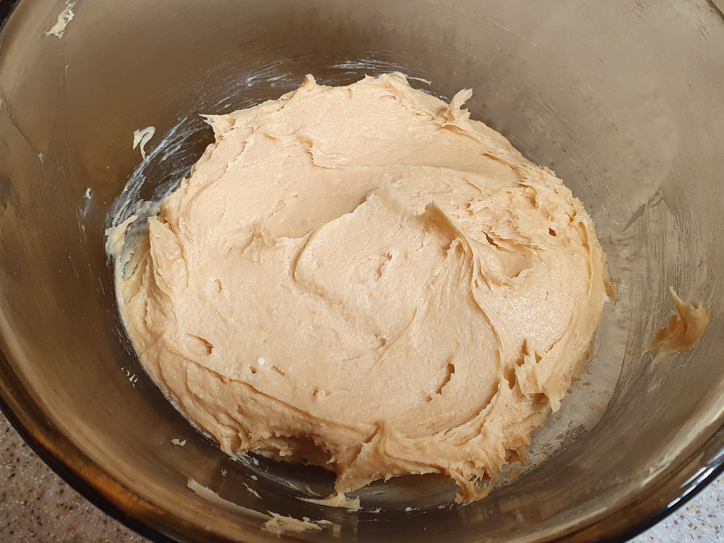 실온에 둔 버터를 덩어리가 없도록 가볍게 풀어주고, 설탕과 꿀을 넣고 휘핑한다. 꿀이 없다면 올리고당이나 물엿을 넣어도 된다.