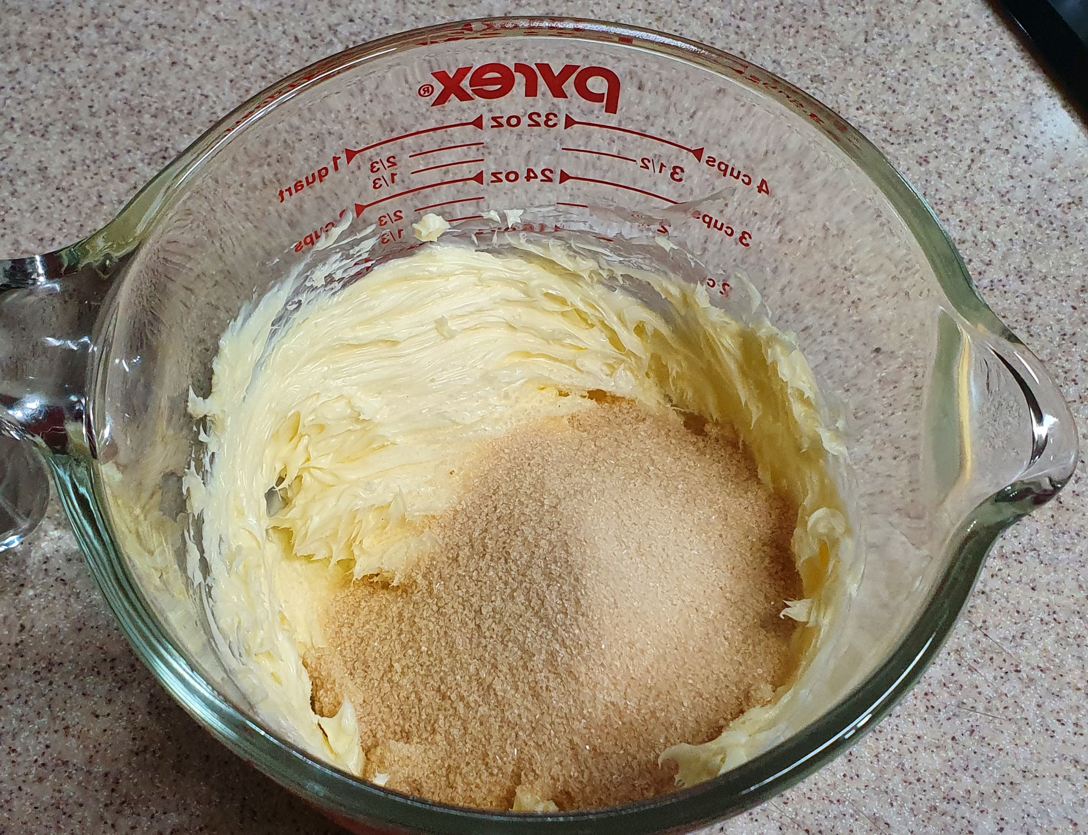 설탕을 넣고 휘핑해서 버터 색이 하얗게 변하고, 부피가 1/5배정도로 부풀어오르면 계란을 넣는다. 럼을 넣고 한번 풀어서, 4~5번에 나누어 넣는데 처음에는 전체의 30% 정도를 넣고 양을 점점 줄여가면서 각 2분 정도 충분히 유화시켜준다. 4~5번째에서 분리가 나는 것 같으면 가루재료를 한큰술 넣어서 수분을 조금 잡아주면 된다. 계란은 반드시 차갑지 않은 실온의 계란을 사용해야한다.