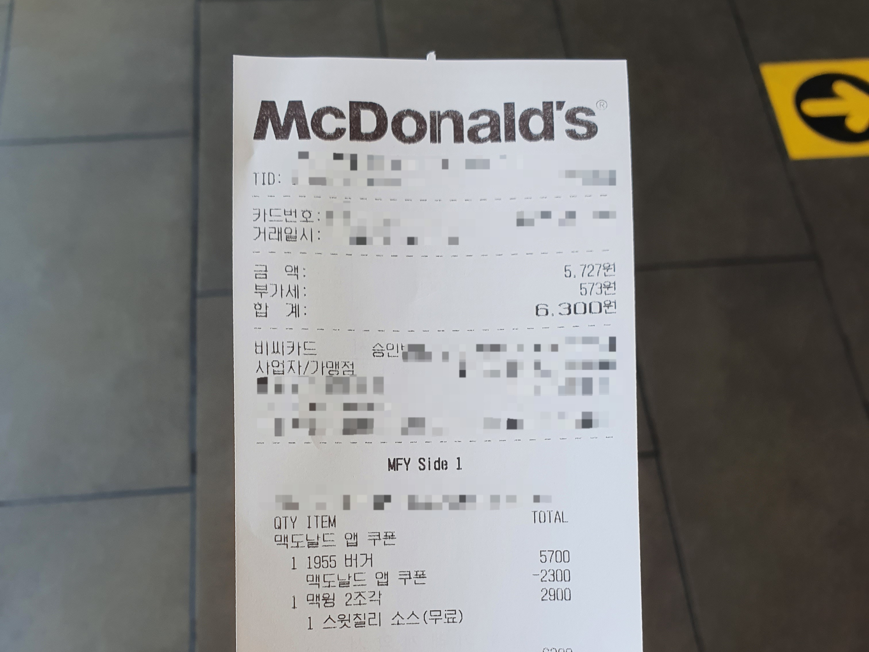 맥윙은 2조각 / 4조각 / 8조각 이렇게 팔고, 가격은 2조각 2,900원 / 4조각 5,500원 / 8조각 10,900원이다. 맥윙 2조각에 콜라가 묶인 콤보는 3,600원. 맥윙을 시키면 스윗칠리 / 스윗앤사워 / 케이준 소스 중 하나를 무료료 제공한다. 나는 끼니로 먹는 거라 1955 버거 단품을 앱쿠폰을 써서 주문하고, 맥윙 2조각에 스윗칠리 소스를 골라 주문했다.1955 버거가 쿠폰을 사용해서 3,400원, 맥윙 2조각이 2,900원이라 총 6,300원이다.