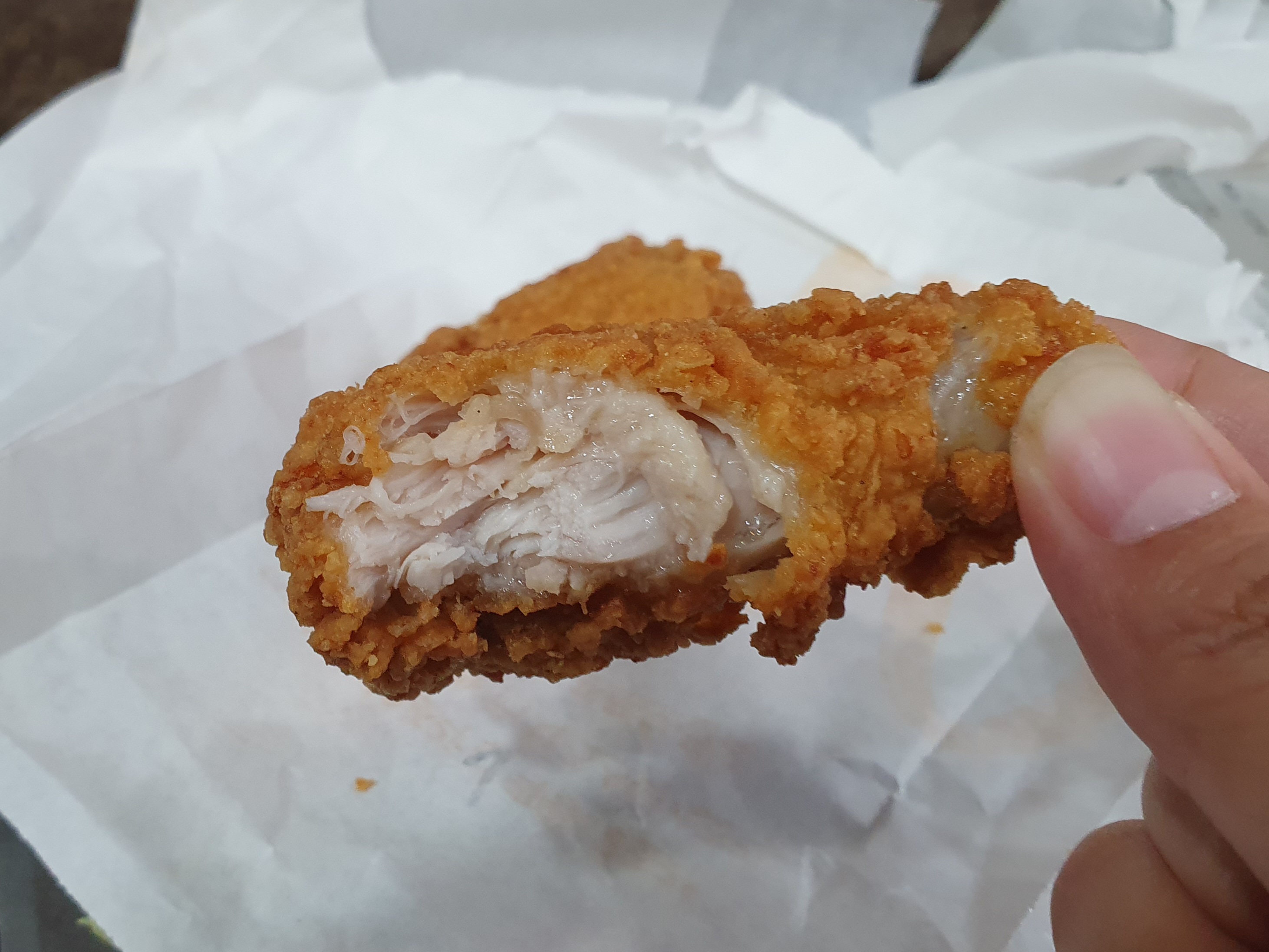 맛이야 짭짤하고 촉촉한 치킨인데, 사이즈에 비해 가격이 비싸다. 소스를 무료 제공한다 쳐도 그 소스 200원인데, 심리적 마지노선이 2,500원이었던 느낌? 맛있긴 한데 재출시되었다니까 한번 먹어보자~ 라던지 쿠폰 받았으니까 먹어보자~ 정도 수준이지 막 8조각씩 주문해 먹을 정도는 아니다. 그럴거라면 그냥 KFC 사 먹는 게 나을 듯. 햄버거를 먹으면서 사이드로 변경하는 정도는 괜찮겠다.