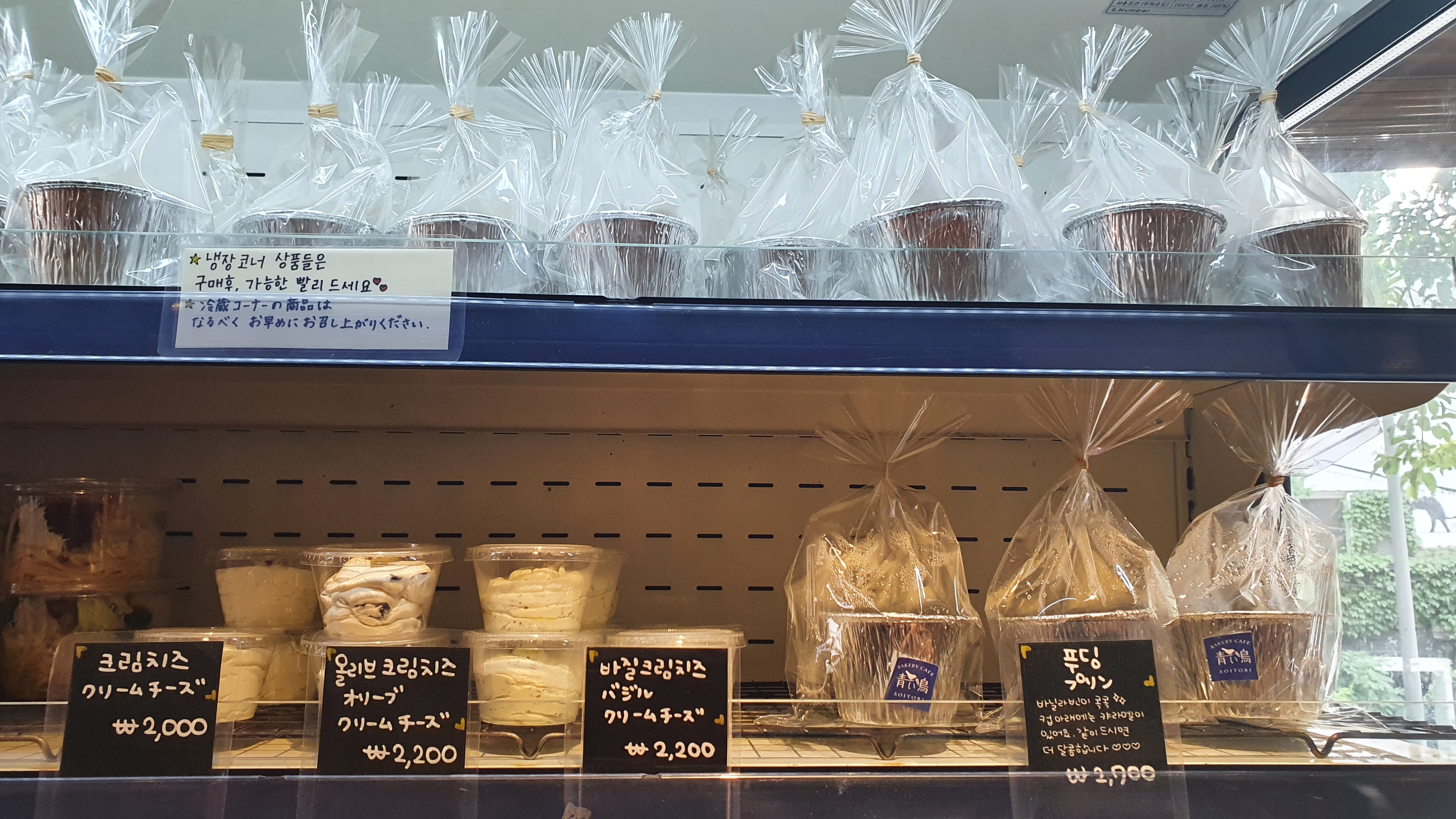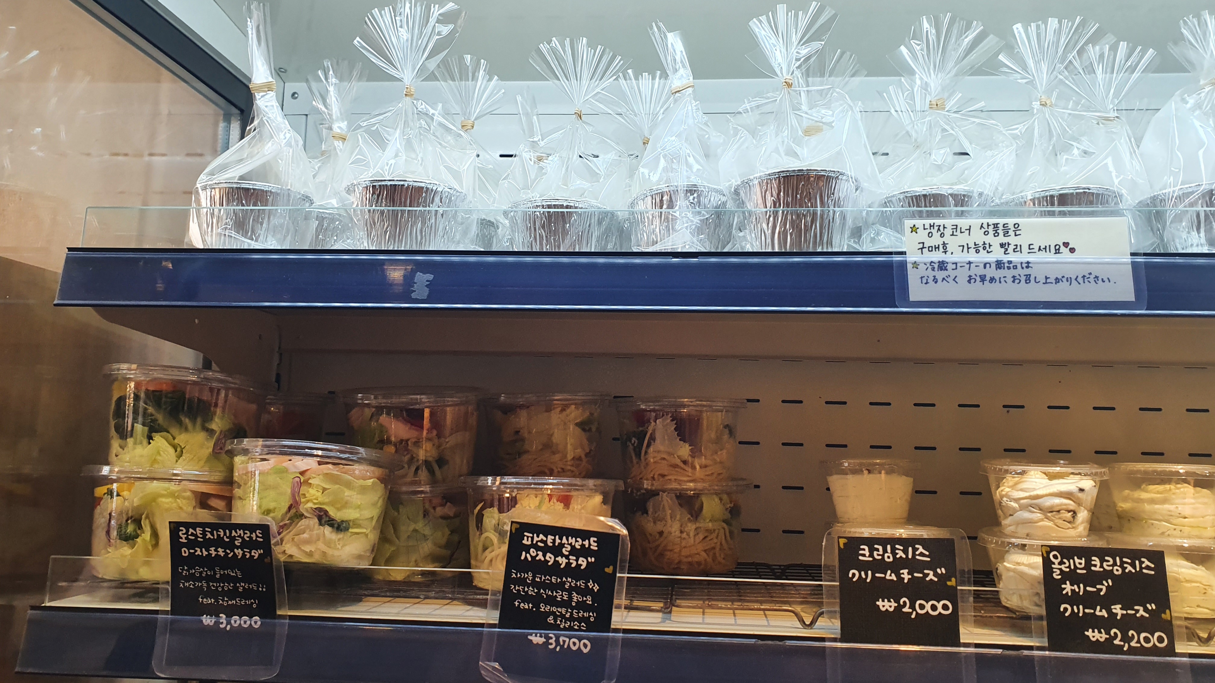 냉장고에 있는 빵도 꽤 다양하다. 푸딩과 샐러드, 샐러드 파스타, 크림치즈와 슈 같은 종류. 이제 날이 더워져서 포장해가기에는 조금 위험해지고 있고, 아예 바로 먹을 것일때 사는 게 좋겠다. 아니면 뭐 집이 가까우면 괜찮겠지.