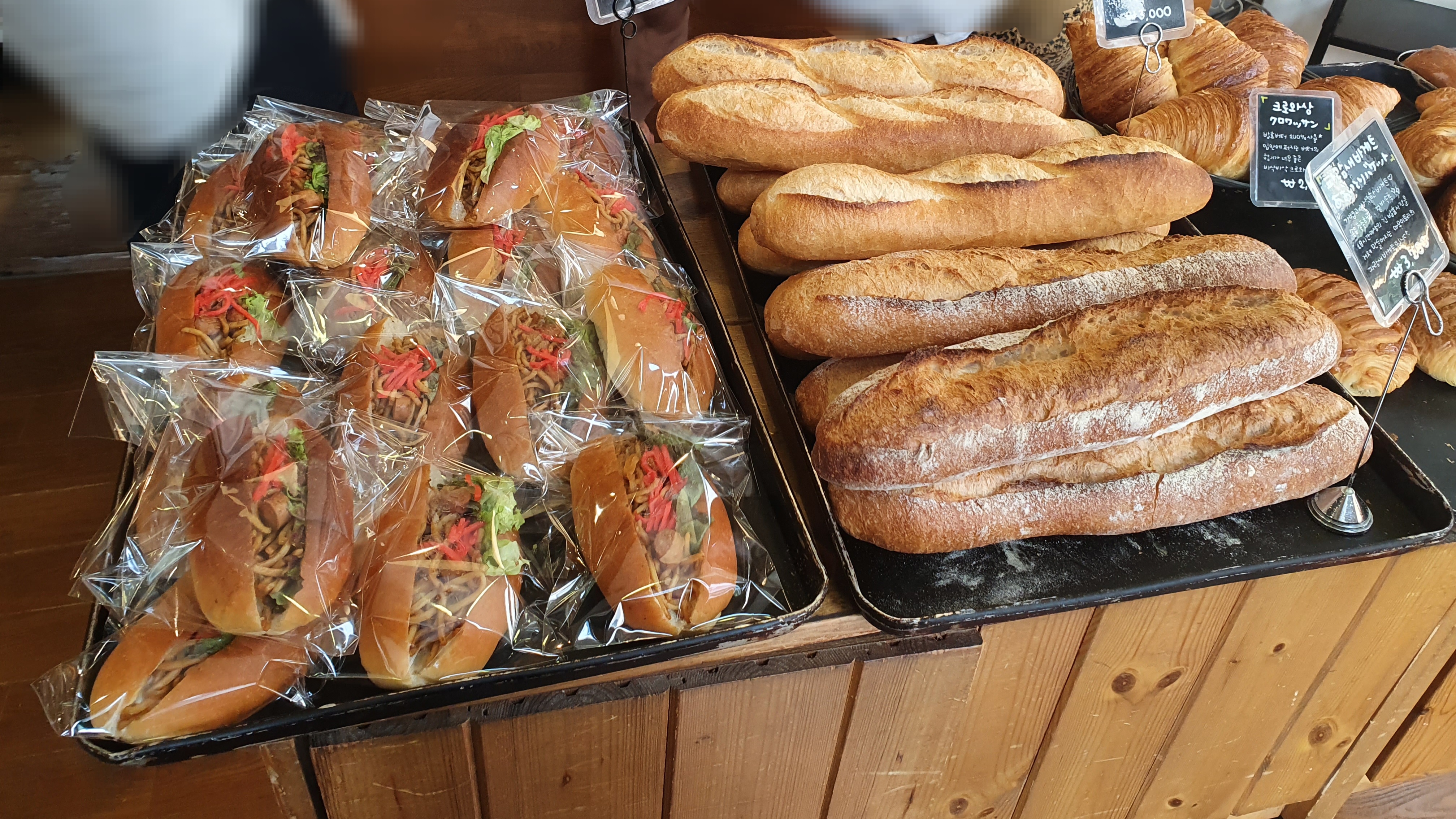 아오이토리에서 가장 많이 사 먹은 야끼소바빵. 그 옆에 바게트와 크로와상, 샌드위치가 있다. 야끼소바빵이 이제 하나에 2,800원이 되었으니 물가가 무슨일이냐 싶다.