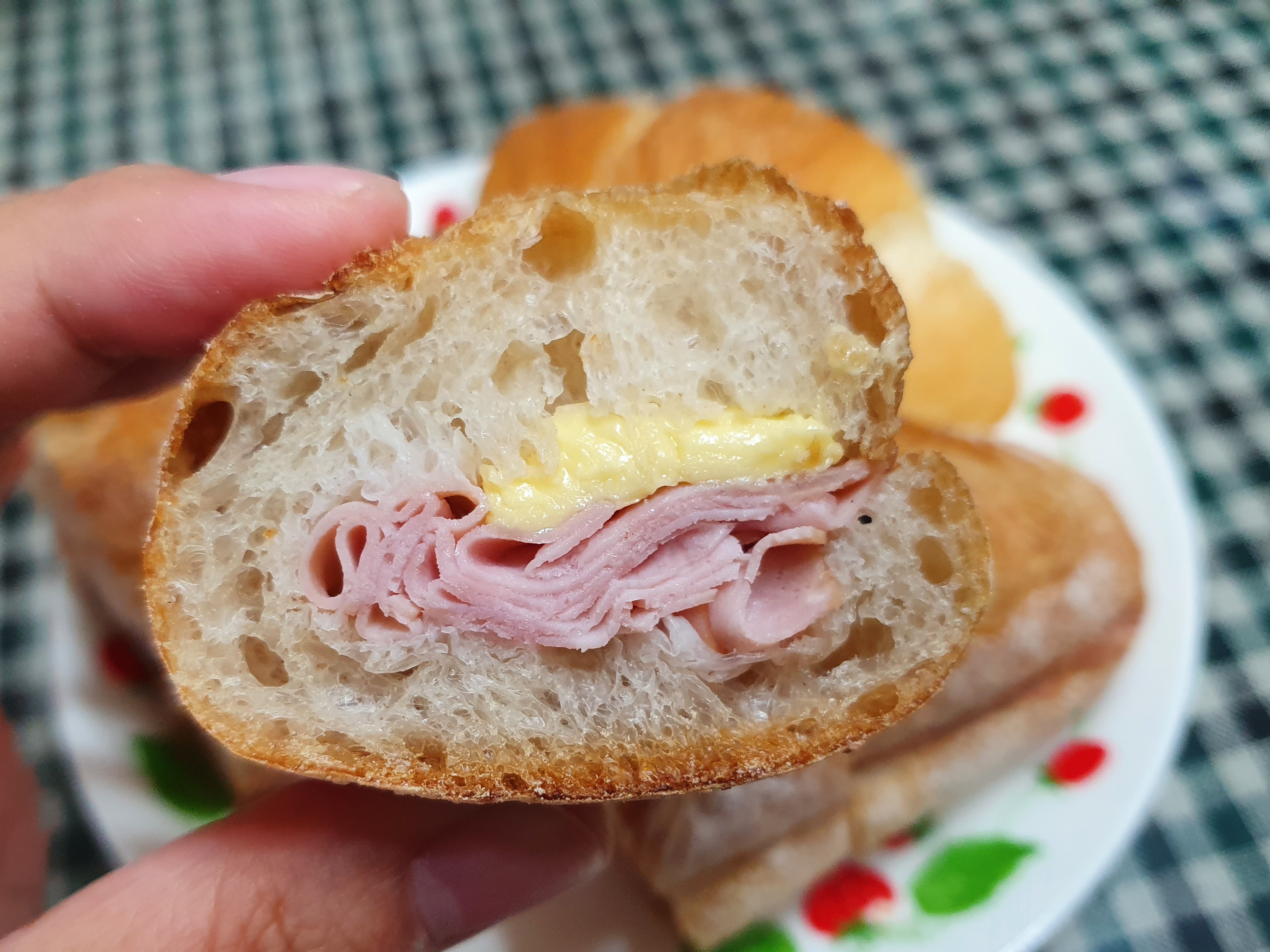 집에 가져와서 다음 날 아침으로 먹었다. 잠봉뵈르는 6조각을 내 주는데, 한입에 넣기에 약간 큰 정도의 크기다. 꼬마소금빵은 이름답게 귀여운 사이즈인데, 손바닥 정도는 되는 크기라 그렇게 작은 느낌은 아니다. 맛은 약간 짭쪼름한 바게트 느낌. 뭐 바게트 반죽을 쓰니까 그렇겠지만, 역시 소금빵은 별로 내 취향이 아니다.