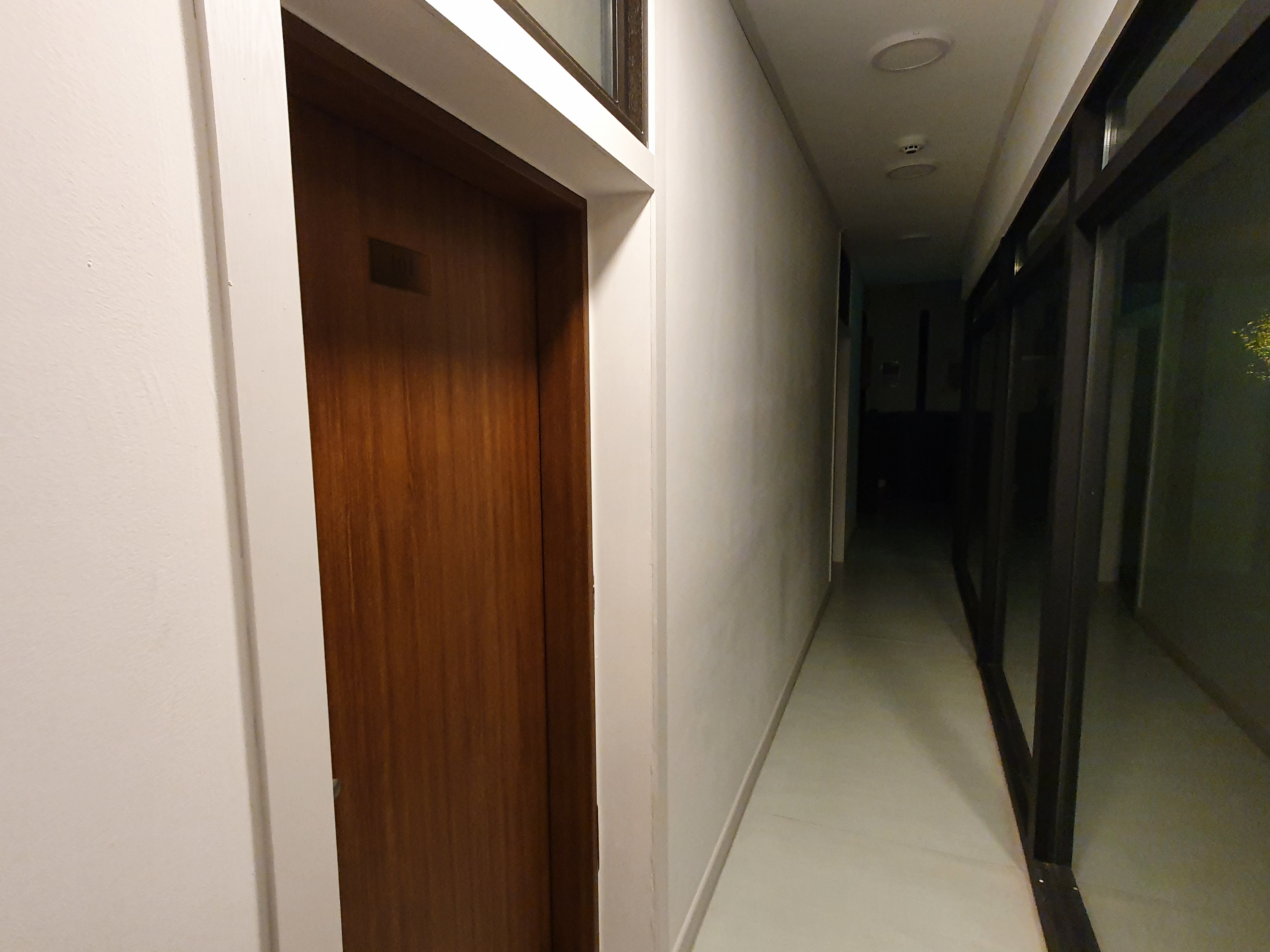 주방에 붙어있는 중문을 열면 중정과 객실 복도가 나온다. 복도를 따라가다보면 중간에 2층으로 올라가는 계단이 있고, 그 옆에 파우더룸과 샤워실이 있다. 2층에 따로 화장실은 있는데, 샤워실은 1층에만 있다고 하니 주말에는 조금 붐빌수도 있겠다.