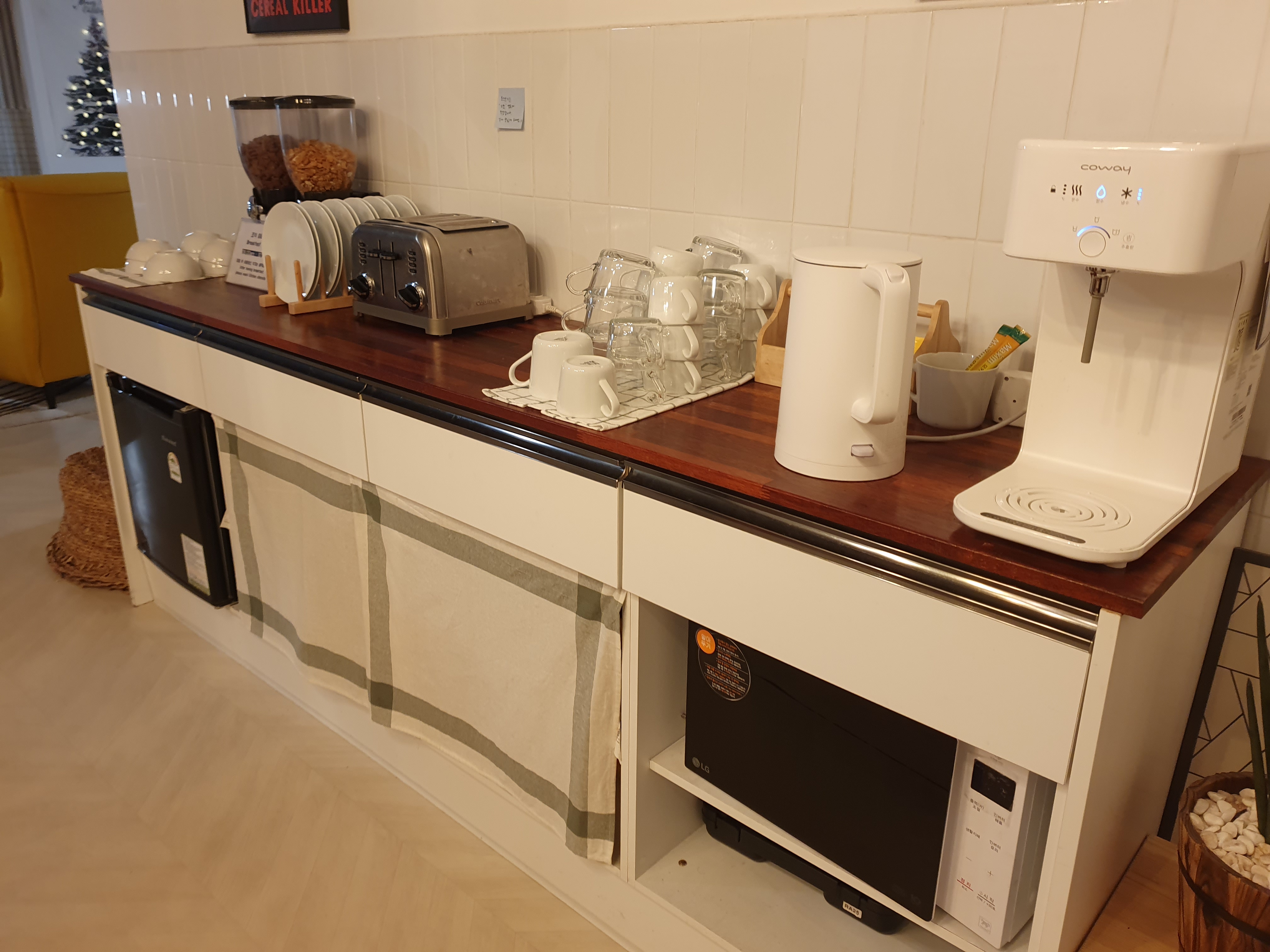 샴푸, 린스, 바디워시, 클렌징폼, 치약, 비누가 준비되어있어서 칫솔만 챙겨오면 된다. 만약 가져오지 않았으면 데스크에서 천원인가에 구매할 수도 있으니 짐은 가볍게 가져와도 될 듯. 무엇보다 청소상태가 아주 좋아서 만족스럽다. 근래 가 본 모든 숙소 중 청소상태가 가장 좋았다.