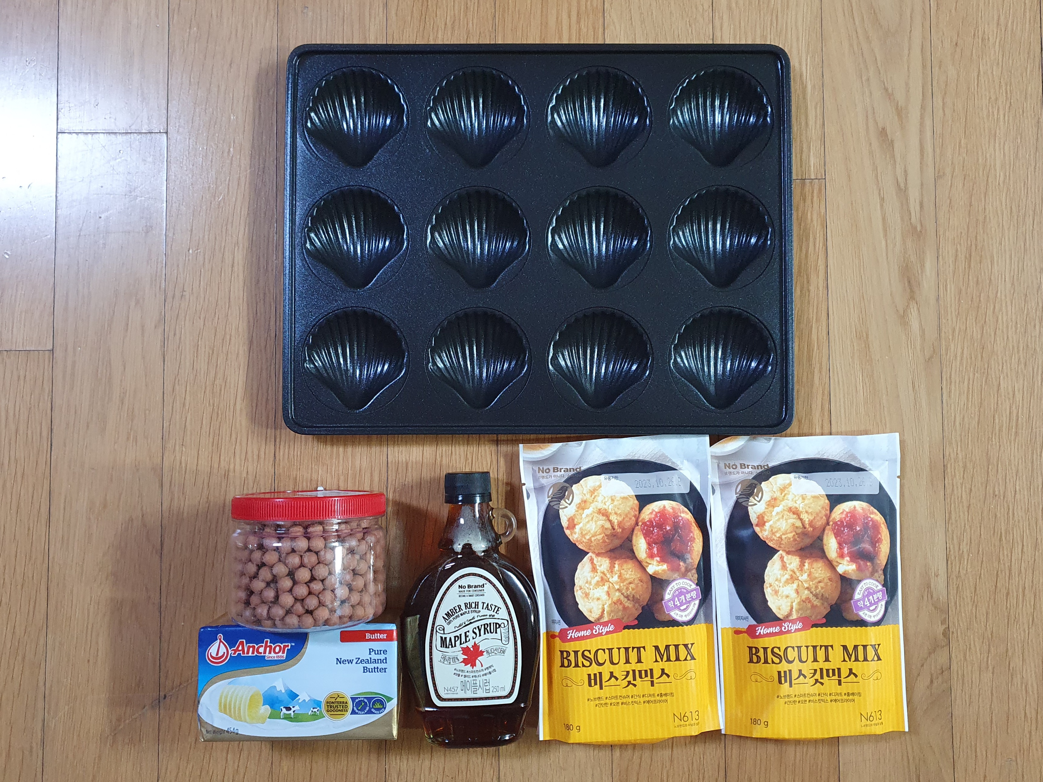 거기에 노브랜드에서 메이플 시럽 한 병, 비스킷 믹스 2봉을 사 왔다. 메이플시럽은 250ml에 5,980원, 비스킷 믹스는 1봉지 1,280원이었다. 비스킷 믹스를 엄마가 아주 마음에 들어하셔서 직접 반죽하기 귀찮을 때 써먹기로 했다. 메이플시럽은 커피에도 넣고 호두파이 할 때도 넣고 마들렌에도 넣어야지.