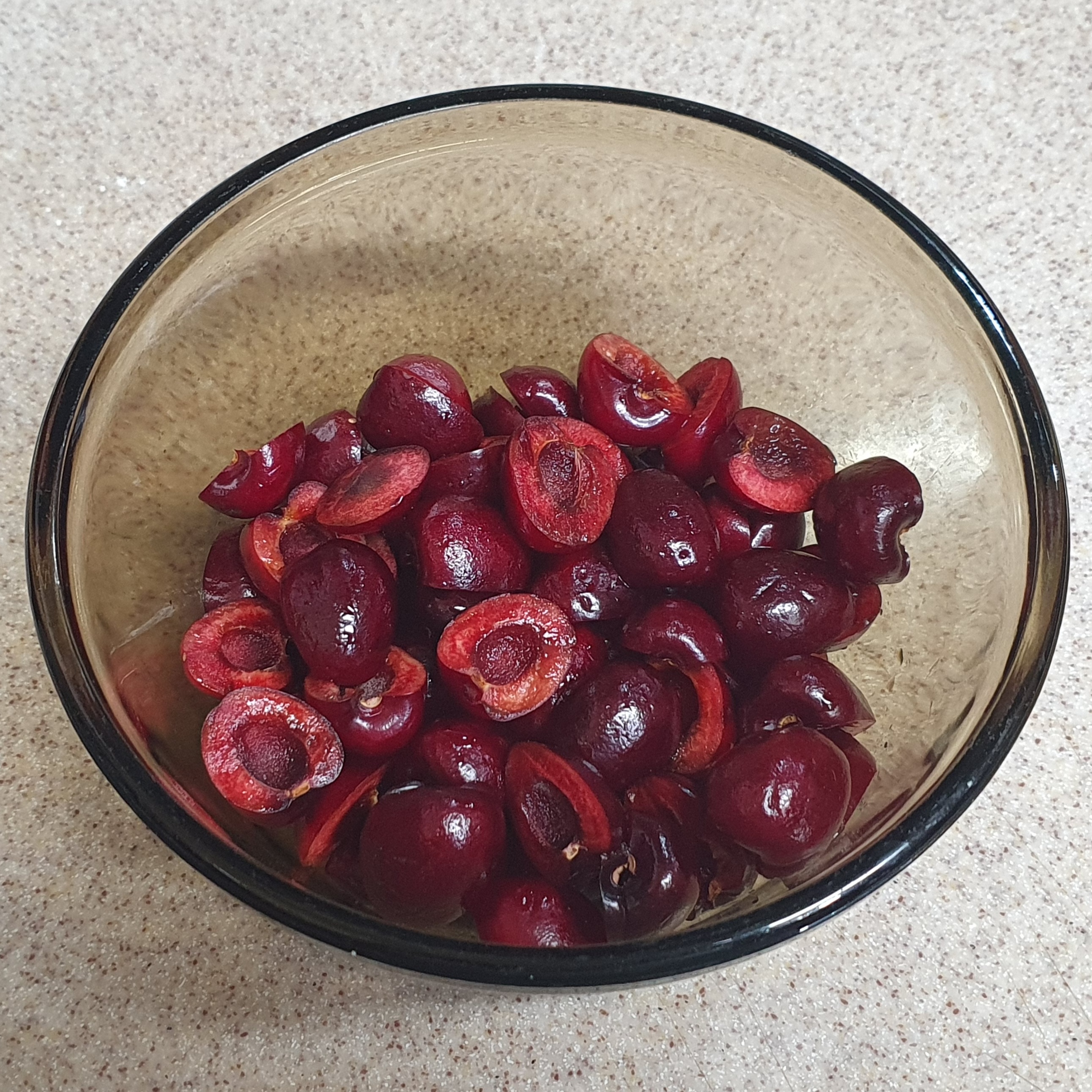 우선 가장 먼저 할 것은 체리 바르기. 씨 빼기 전에 220g으로 시작했더니 딱 204g이 나왔다. 체리 과육이 팡팡 씹혔으면 해서 반으로만 잘랐는데, 알이 크다면 1/4쪽을 내도 좋겠다.