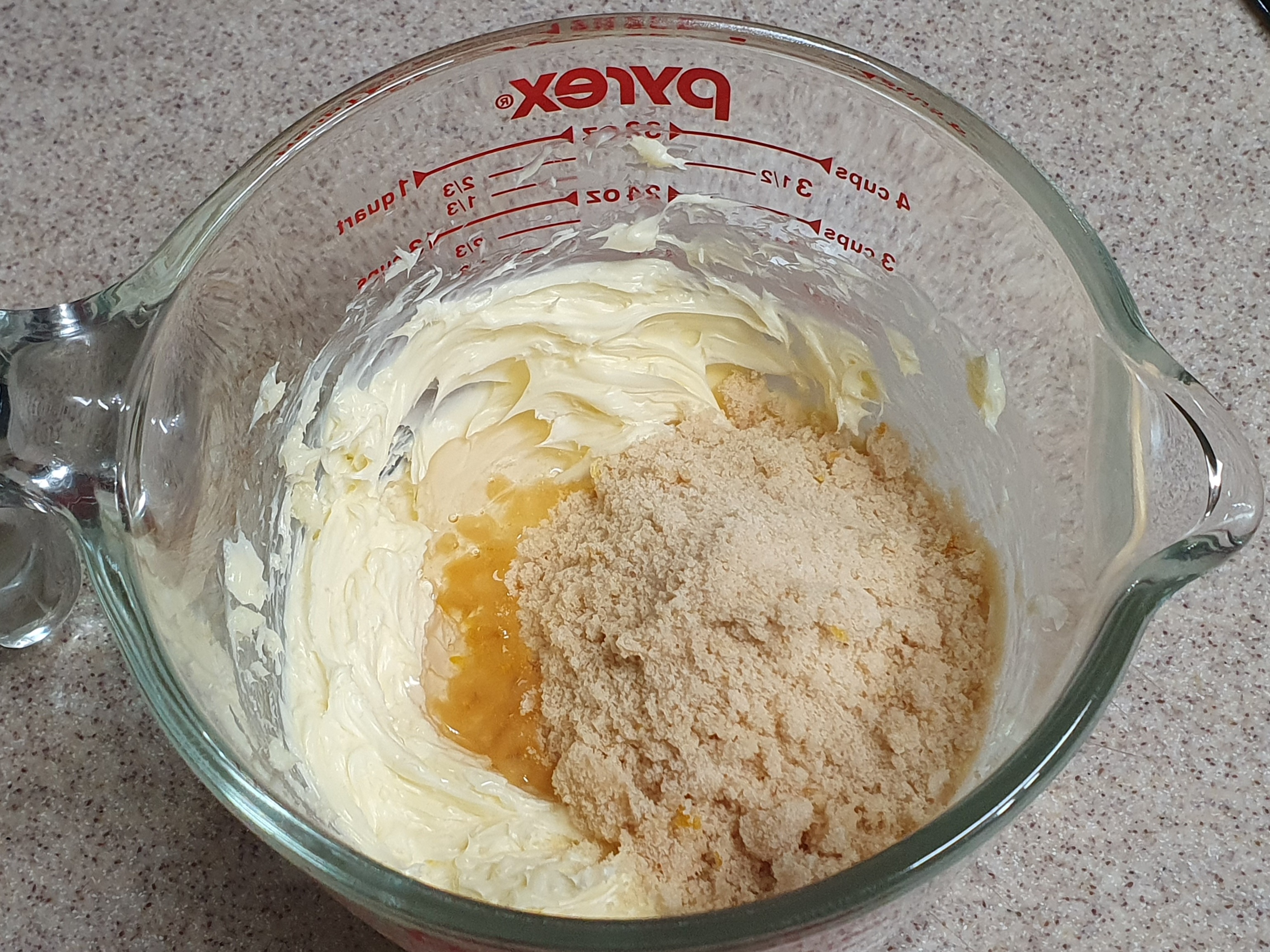 실온에 둔 말랑한 버터에 설탕과 꿀을 넣고 휘핑한다. 이번에는 자일로스 설탕이 있어서 그걸 사용했는데, 아무래도 자일로스 설탕은 베이킹에 사용하면 구움색이 이상하게 나오는 편이라 남에게 선물하기는 그렇고, 집에서 만들어 내가 먹을 때에나 사용해야겠다. 뭐 하여튼 레몬제스트를 미리 버무려 둔 설탕을 넣고 버터가 하얗게 되도록 휘핑한다.