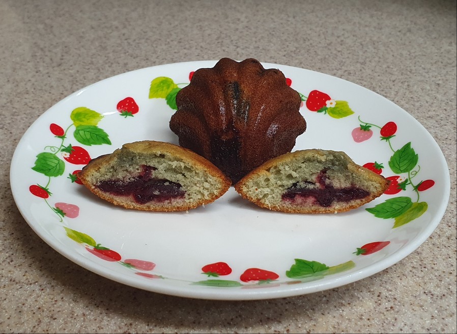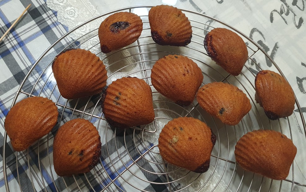 체리 콩포트를 60g만 넣었으면 딱 마음에 드는 당도였을텐데 체리가 많은 게 좋아서 추가했더니 살짝 달다. 따뜻한 아메리카노와 같이 먹는 게 제일 맛있고, 배꼽이 좀 얇게 나온 것은 얼려먹어도 괜찮았다. 하지만 버터 태워서 마들렌 만들기는 너무 귀찮으니까 다음에는 그냥 녹인 버터로 만들어야지.