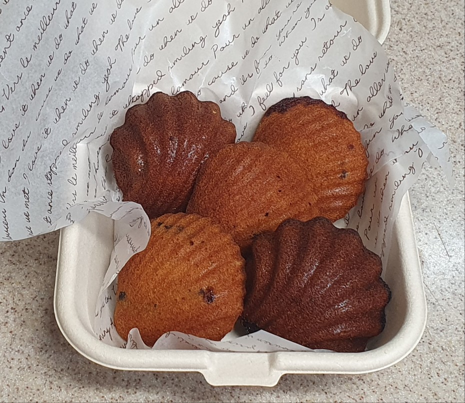 이건 친구 선물할 것. 좀 더 큰 왕조가비 마들렌은 2분 정도 더 구웠더니 구움색이 좀 많이 나서 아쉽다.