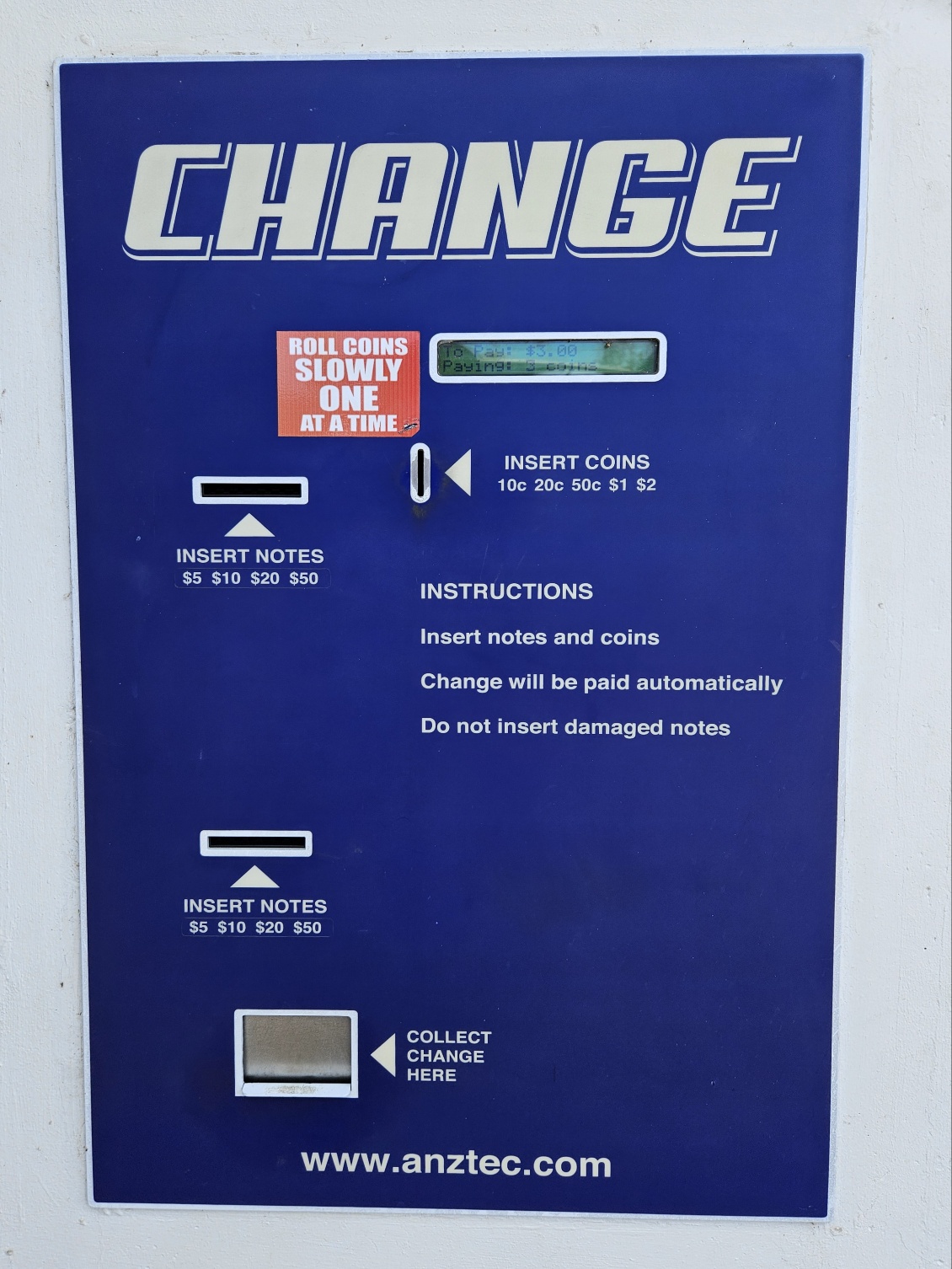 나는 뭐 오늘 코인세차 하러 온 거라 일단 돈을 바꿨다. 오토워시 지나서 자판기쪽으로 가면 옆에 동전교환기가 있는데, 지폐나 센트를 넣으면 1불이나 2불 동전으로 바꿔 나온다. 세차하려고 탈탈 털어도 가진 동전이 $4밖에 없어서 5불 지폐를 한 장 바꿔서 총 $9불을 준비했다.